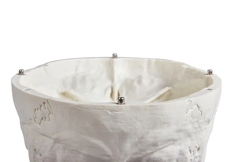 - Das Schädeldach ist durch unzerbrechliche Metallstifte an der Schädelbasis ausgerichtet und wird von starken Magneten gehalten