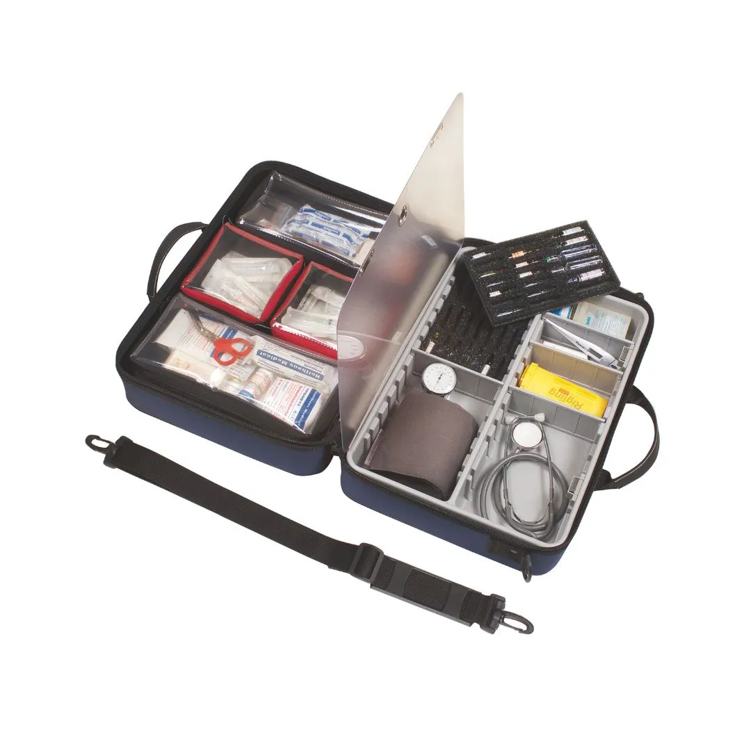 Die Arzttasche "Medicare XL" ist trotz ihrer Größe leicht und handlich. Dank der cleveren und variablen Aufteilung ist der Inhalt immer bestens aufbewahrt und übersichtlich organisiert. Durch die transparente Abdeckplatte mit Magnetschluss kann der Inhalt sofort gesehen werden. Zusätzlichen Stauraum bietet zudem die großen Fronttasche. Auch bei intensiver Beanspruchung bleibt die Tasche durch das robuste Polymousse Gewebe und den umlaufenden Kantenschutz lange haltbar.Produktmerkmale