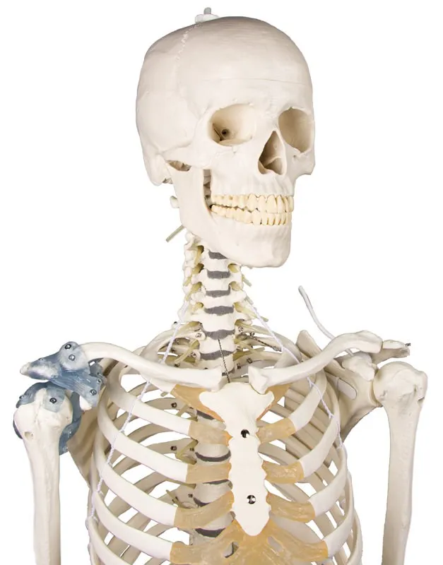 Schulter und Hüfte sind ohne Metallteile montiert und bieten die Möglichkeit, neben Rotationsbewegungen auch Gleitbewegungen im Gelenk zu demonstrieren. Die Gelenkflächen gleiten direkt aufeinander und machen es erstmals möglich, alle Gleit- und Traktionsmöglichkeiten entsprechend manueller Prinzipien und der Biomechanik zu demonstrieren.