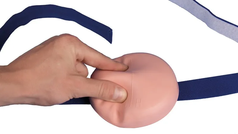 Das Kissen ermöglicht eine realistische Bauchfalte zur Injektion zu formen. Außerdem bietet es durch die besonderen Materialien ein realistisches Griffgefühl, das dem menschlichen Gewebe sehr nahekommt. Das Modell ist durchstichsicher und kann mithilfe eines flexiblen Bandes am Übenden befestigt werden.