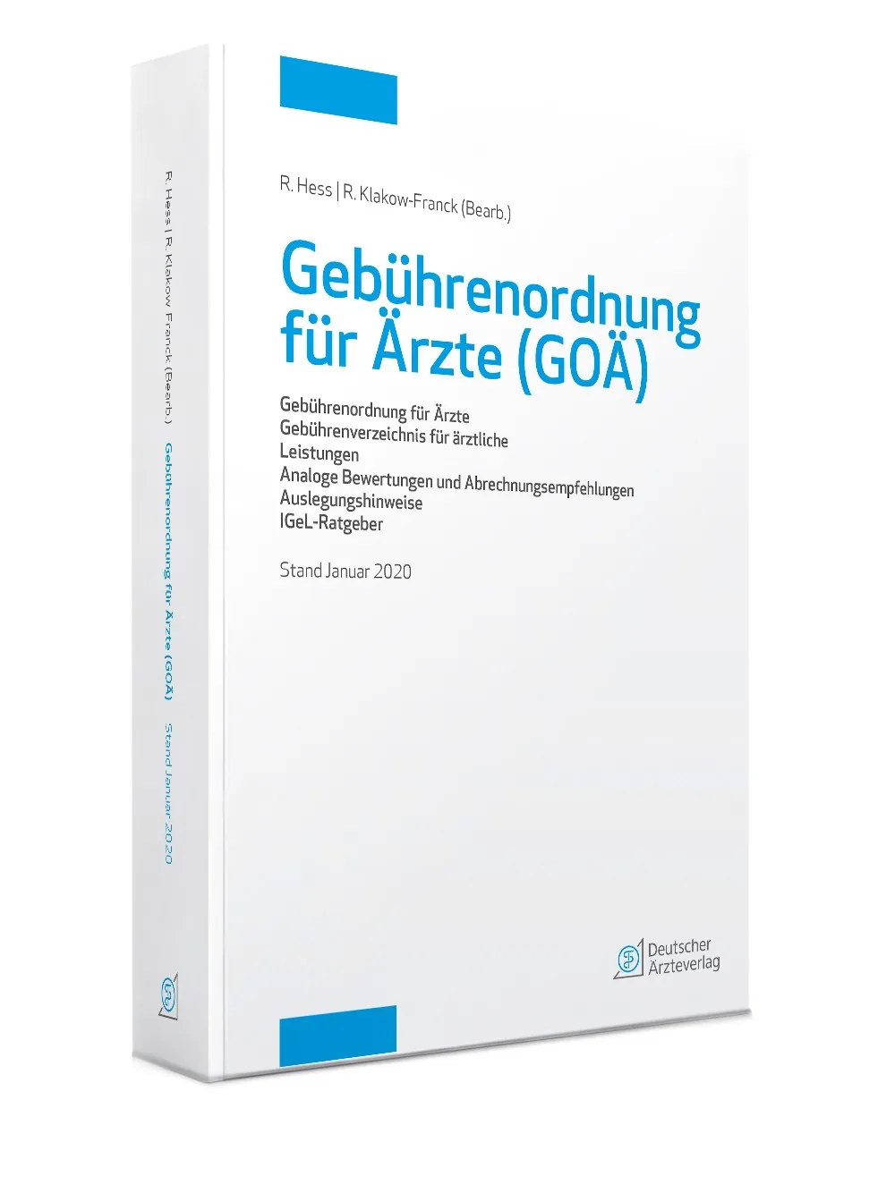 - Gebührenordnung für Ärzte (GOÄ), Stand Januar 2020 Gebührenverzeichnis für ärztliche Leistungen, Analoge Bewertungen und Abrechnungsempfehlungen, Auslegungshinweise, IGeL-Ratgeber
