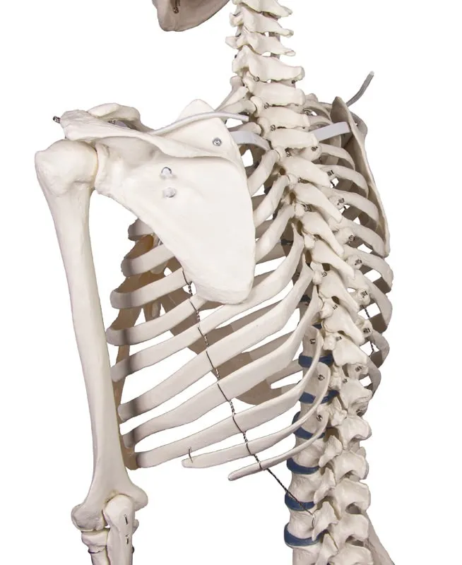 Die Schulterblätter sind so montiert, dass sie sich bei Armbewegungen mit bewegen können. Hierdurch kann der natürliche Bewegungsablauf gezeigt werden. Das obere Sprunggelenk ist mit Gummi montiert und erlaubt jede Bewegung. Der Fuß kann einfach abgenommen werden, um ihn z. B. zu einem Kurs mitzunehmen.