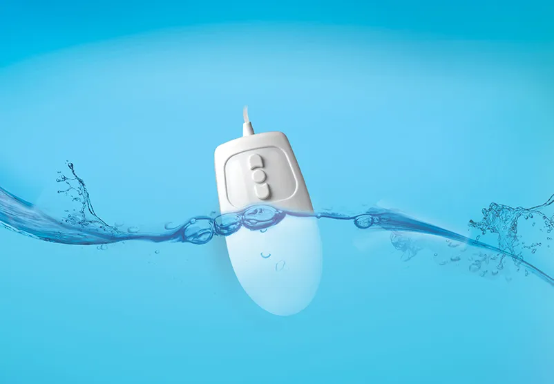 Die medizinische Hygiene-Maus ist vollständig versiegelt, sodass sie abgewischt oder abgesprüht und sogar in Krankenhausübliches Desinfektionsmittel eingetaucht werden kann. Dadurch bietet sie optimalen Schutz gegen Keime und eignet sich v.a. für Bereiche mit höchsten Hygieneanforderungen, bei denen Flüssigkeitsvorfälle und Infektionsgefahren drohen z.B. Operationssäle, Neugeborenenstationen oder in der Intensivpflege.