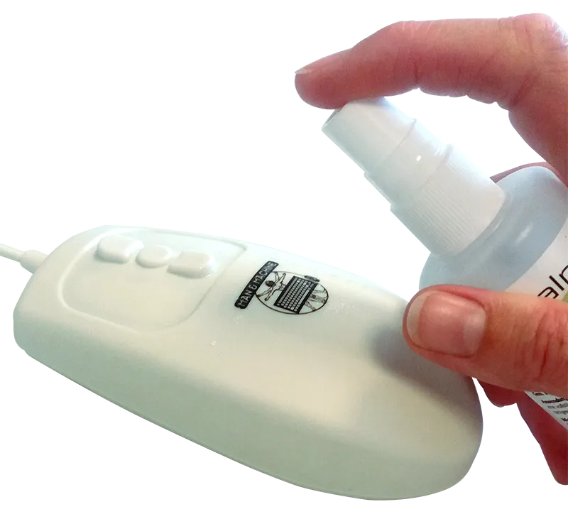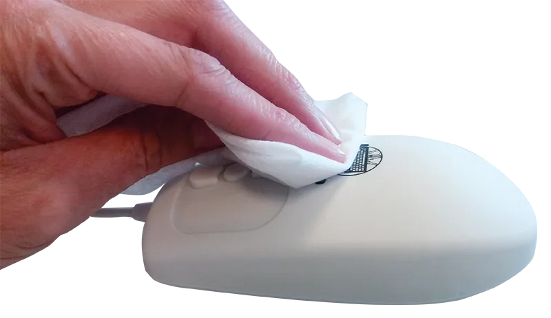 Herkömmliche Computermäuse lassen sich aufgrund ihrer Beschaffenheit nur sehr schwer reinigen und desinfizieren. Besonders die Spalten und darunterliegende Hohlräume entziehen sich einer gründlichen Aufbereitung. Krankheitserreger können sich dort halten und werden über die Hände weitergegeben.