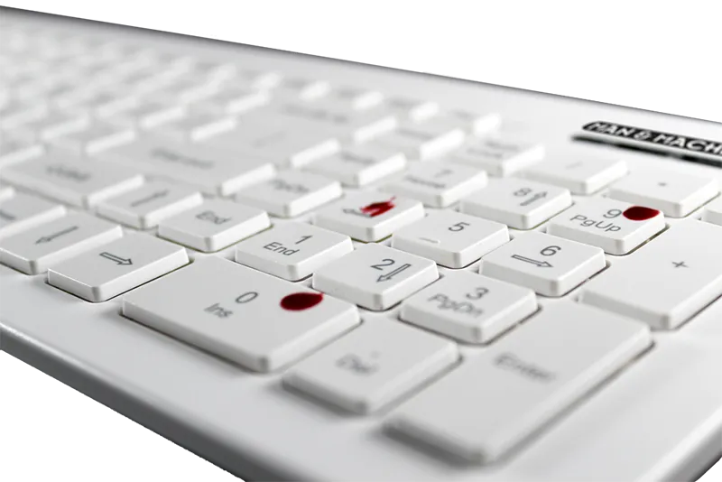 Die "Very Cool" Hygienetastatur der Marke MAN&MACHINE sieht aus wie eine Standard Bürotastatur und hat auch die Geschwindigkeit und Haptik einer Standardtastatur. Im Gegensatz zu Bürotastaturen sind die elektronischen Bauteile von innen versiegelt, deshalb kann die Hygienetastatur mit handelsüblichen Flächendesinfektionsmitteln gereinigt (Eintauchen, Spülen, Absprühen oder Abwischen) werden. Dadurch ist sie wesentlich hygienischer als eine herkömmliche Tastatur.