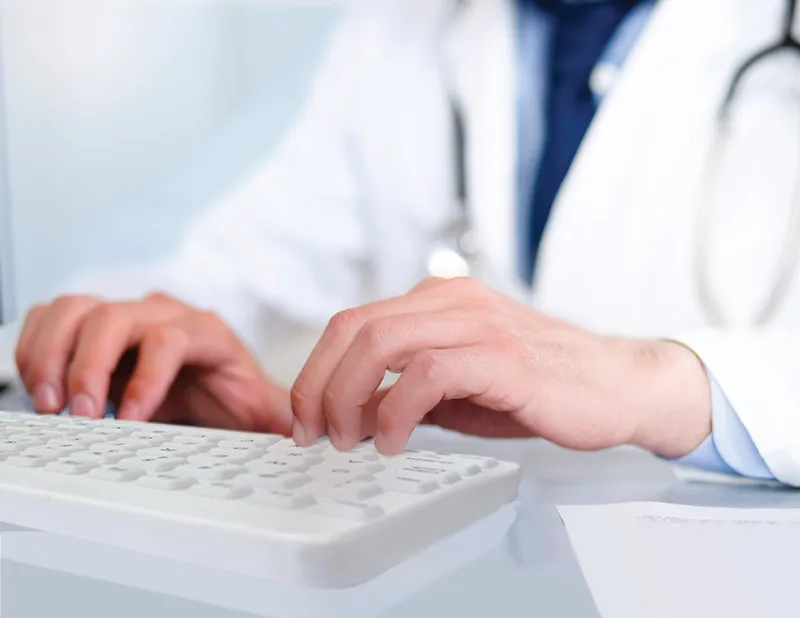 Die Hygiene-Tastatur (M) ist optimal für den Einsatz in Bereichen mit strengsten hygienischen Anforderungen geeignet wie z.B. OPs, Neugeborenen- oder Intensivstationen und selbstverständlich auch in Arztpraxen, Zahnarztpraxen, Laboren etc.
