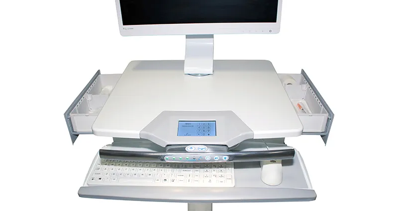 Die "Slim Cool" Hygienetastatur der Marke MAN&MACHINE hat einen leichten Tastendruckpunkt für optimalen Schreibkomfort. Im Gegensatz zu Bürotastaturen ist die medizinische Silikontastatur "Slim Cool" jedoch vollständig versiegelt, sodass sie abgewischt oder abgesprüht werden kann und sogar in ein normales, von Krankenhäusern zugelassenes Flächendesinfektionsmittel eingetaucht werden kann. Dank der Sperrfunktion kann die Reinigung auch während des laufenden Betriebes geschehen. Mit modernster Technologie hergestellt, verfügt die Tastatur über EN60601 und IP68 Zertifikate.