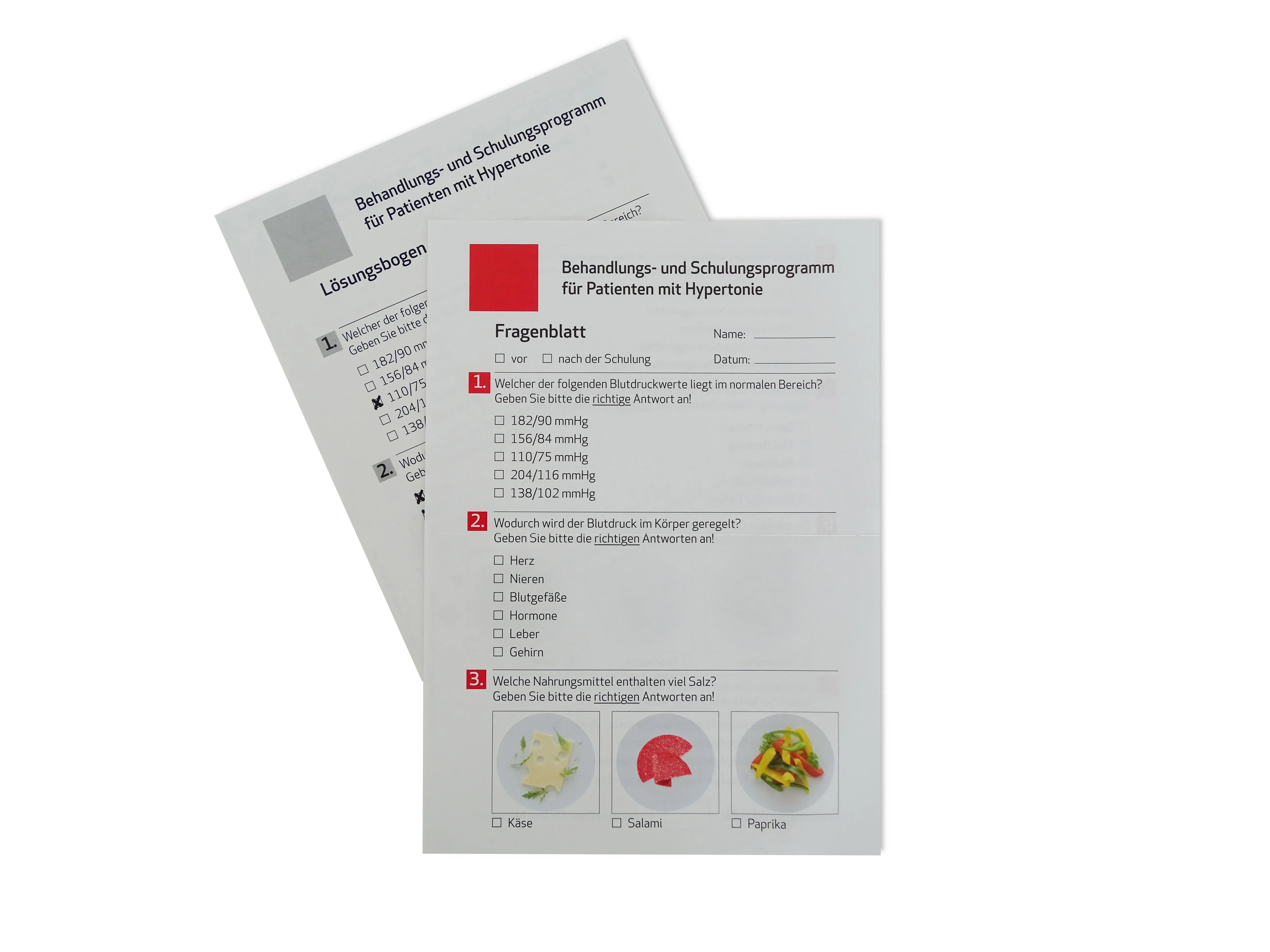 - 20 Fragebögen für Patienten für den Vorher-Nachher-Test