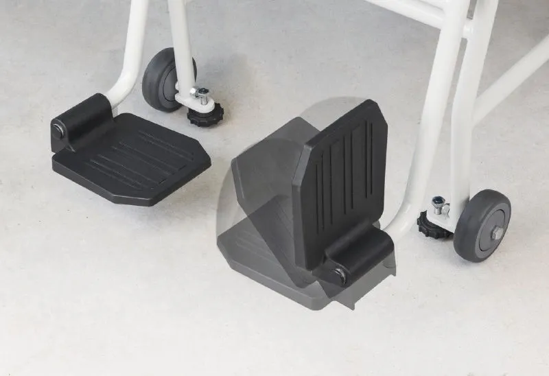 2 Umklappbare Armlehnen und Fußstützen erleichtern das Platznehmen. Ideal für übergewichtige Patienten oder zum barrierefreien Umsetzen bspw. vom Bett auf die Stuhlwaage.