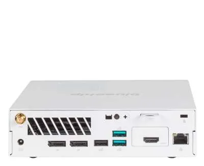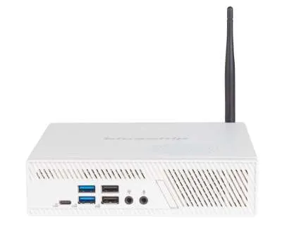 Er misst bei einem Volumen von 1,3 Liter gerade einmal 175 mm x 175 mm x 42 mm. Obwohl das System Leistung auf Desktop-Niveau bietet, beansprucht er nur wenig Platz. Dank des mitgelieferten Standfußes kann das Gerät liegend oder stehend betrieben sowie alternativ per VESA-Wandhalterung platzsparend und völlig unsichtbar z.B. hinter dem Monitor montiert werden.