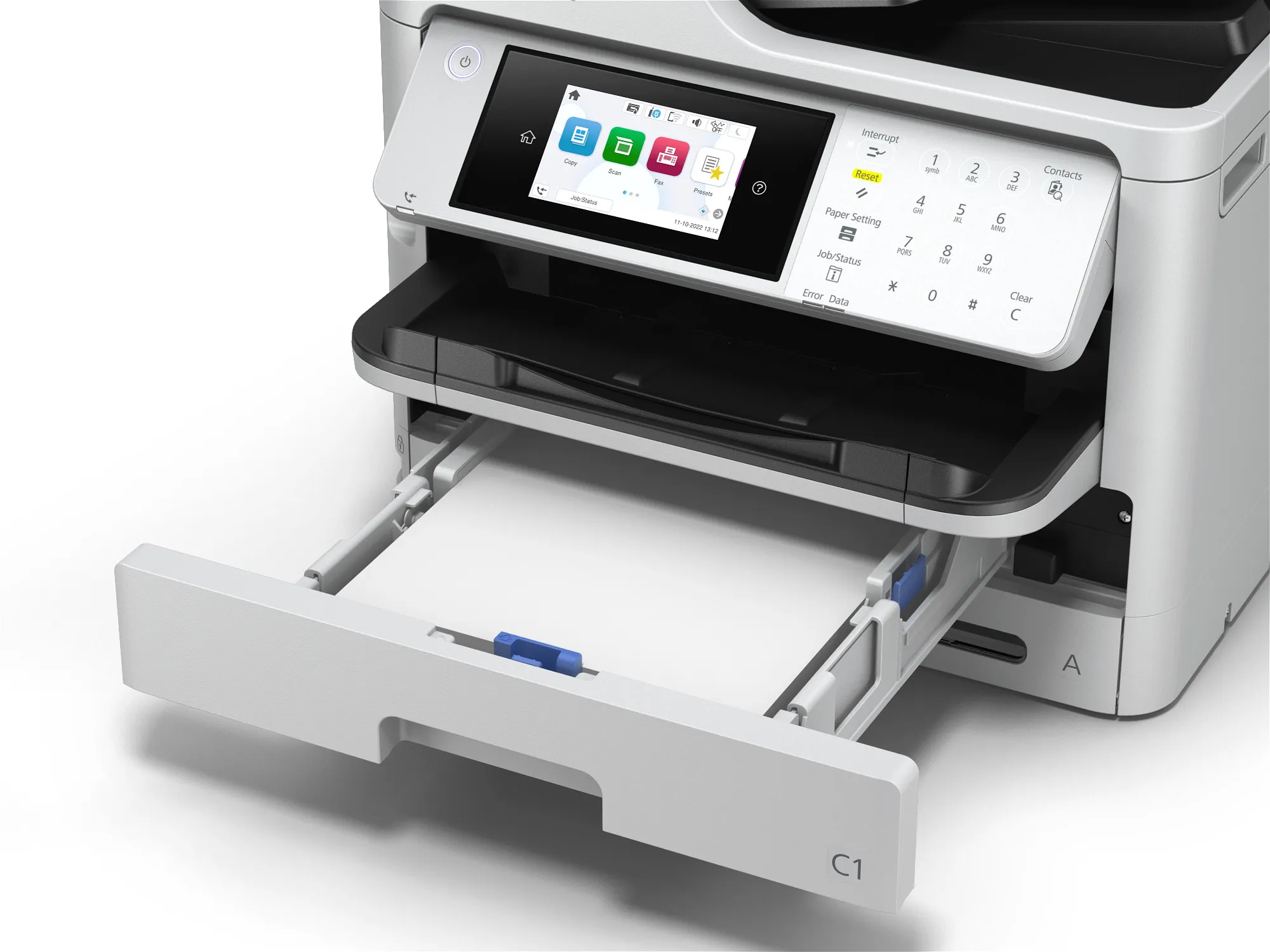 - Hohe Produktivität mit weniger Benutzereingriffe: Schnelles First Page Out Time (FPOT), Single-Pass-Duplex-Scannen und Verbrauchsmaterialien mit hoher Tintenausnutzung
