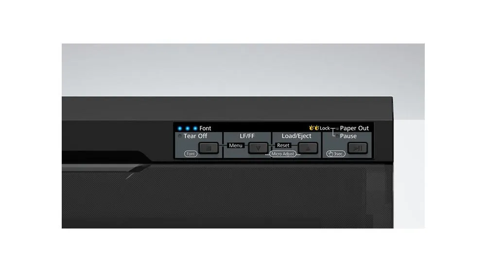 - Schnelles Drucken: Hohe Druckgeschwindigkeit von bis zu 487 Zeichen/Sek. (10 cpi), mehrlagige Formulare mit 1 + 6 Kopien