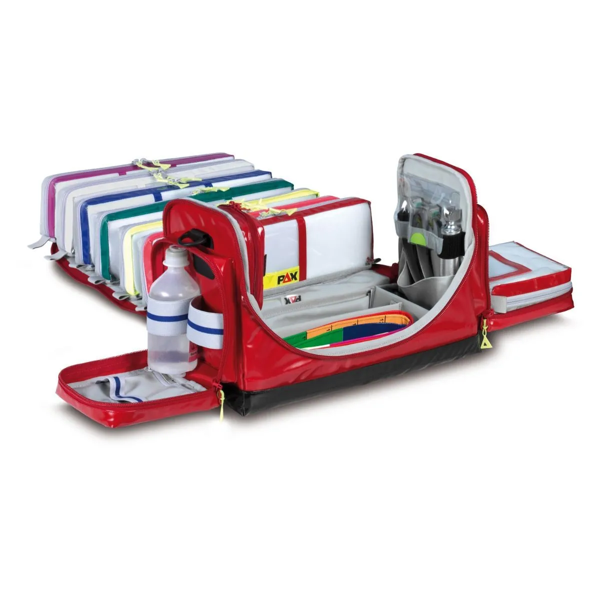 - Korpus und Seitentaschen zur Materialunterbringung, wie z. B. Beatmungsbeutel, Intubationsbesteck und Infusionen