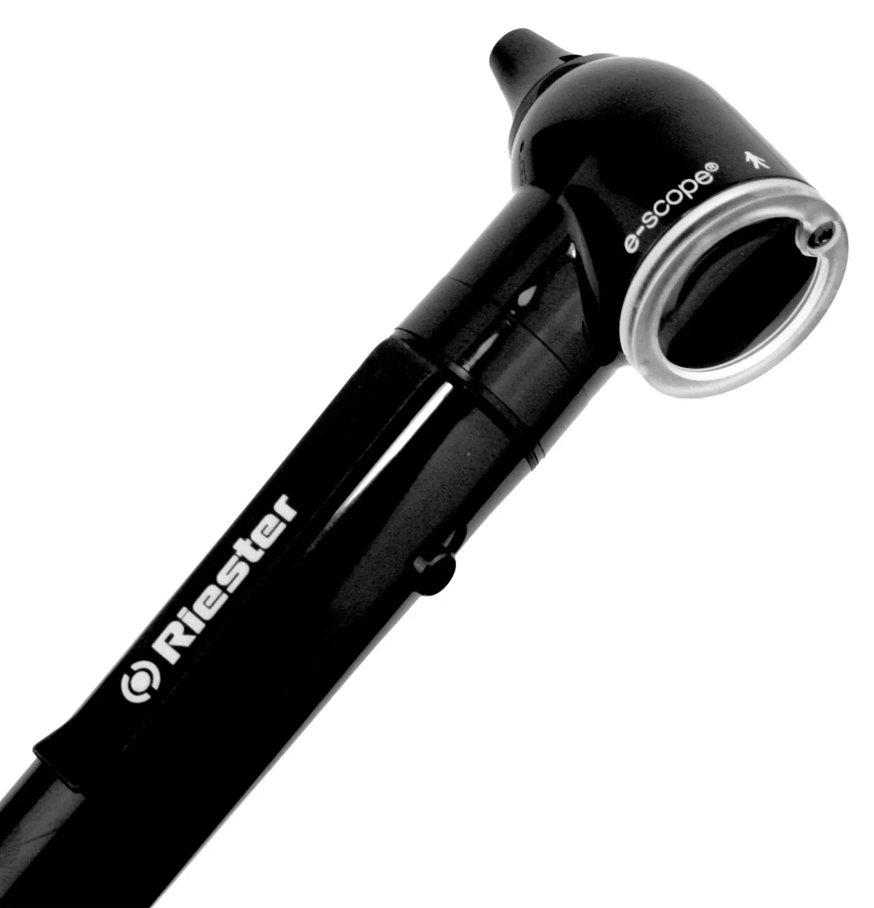 Das Otoskop e-scope mit Xenon Direktbeleuchtung von Riester verfügt über eine nach beiden Seiten schwenkbare, abdichtende Präzisionsoptik mit dreifacher Vergrößerung und sorgt für optimale Sichtverhältnisse für den Untersucher. Die standardisierte Trichteraufnahme des Riester e-scope ist aus strapazierfähigem und hygienischem Metall und ist kompatibel zu zahlreichen handelsüblichen Einweg-Ohrtrichtern anderer Hersteller.