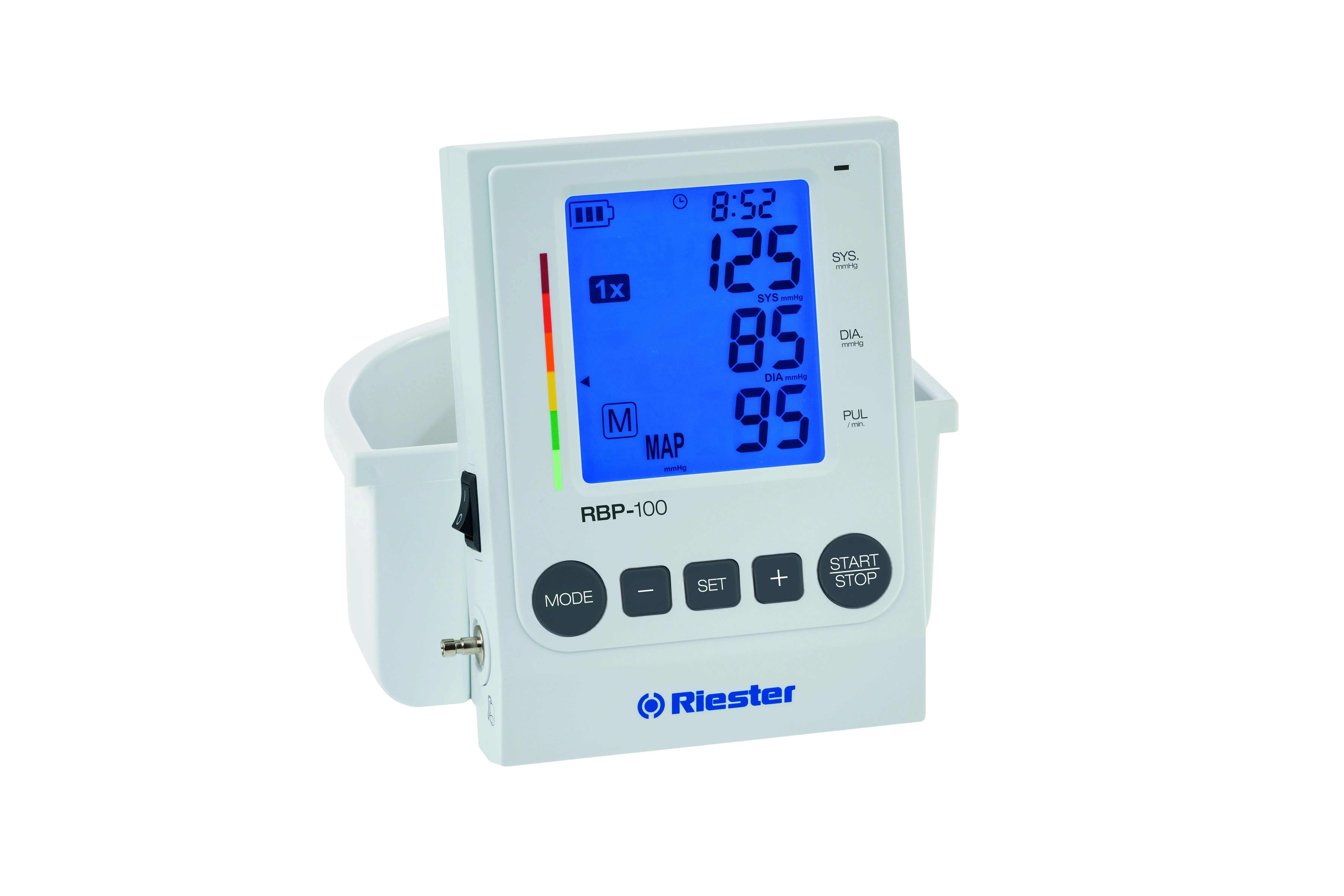 Das Riester RBP-100 ist ein digitales Blutdruckmessgerät, das speziell für den Einsatz in Arztpraxen, Pflegeheimen und Krankenhäusern entwickelt wurde. Es verfügt über drei verschiedene Messmodi (automatisch, manuell und einer 3-fach Messung).