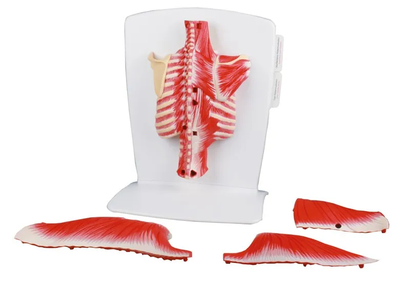 Dieses Rückenmuskelmodell ist zur Erklärung und zur Interaktion mit den Patienten sehr gut geeignet. Die oberflächliche und mittlere Rückenmuskulatur ist weich, flexibel und kann abgenommen werden. Darunter ist die tiefe Rückenmuskulatur dargestellt. Dadurch wird die Erklärung der anatomischen Verhältnisse vereinfacht. Zwei herausziehbare Karten geben Informationen über die Muskeln.