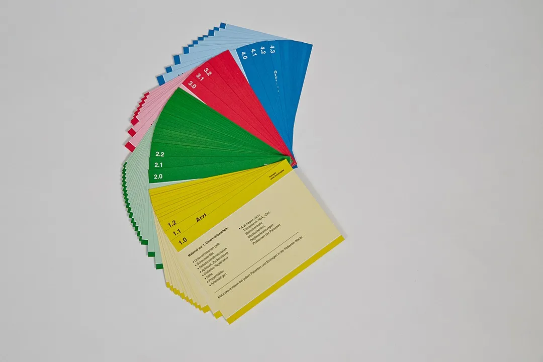 - 57 Unterrichtskarten, 6 Zuordnungskarten und 18 Fragekärtchen im Etui