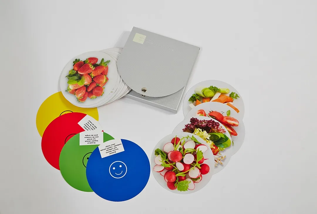 - 52 Nahrungsmittel-Fotos für die kaloriendefinierte Kost im Etui