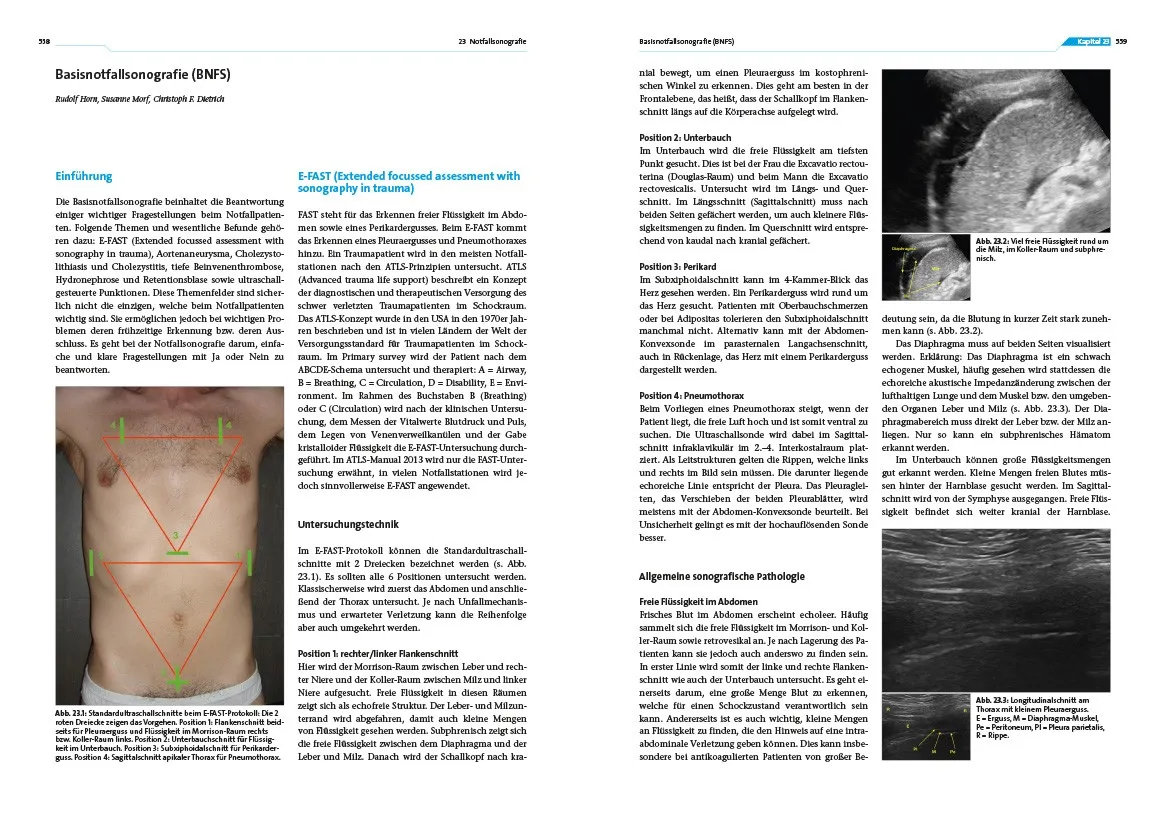 - Notfallsonografie: Basisnotfallsonografie, fokussierter kardialer Ultraschall, Lungenultraschall im Notfall, fokussierter Ultraschall am Bewegungsapparat, Notfallsonografie im klinischen Kontext